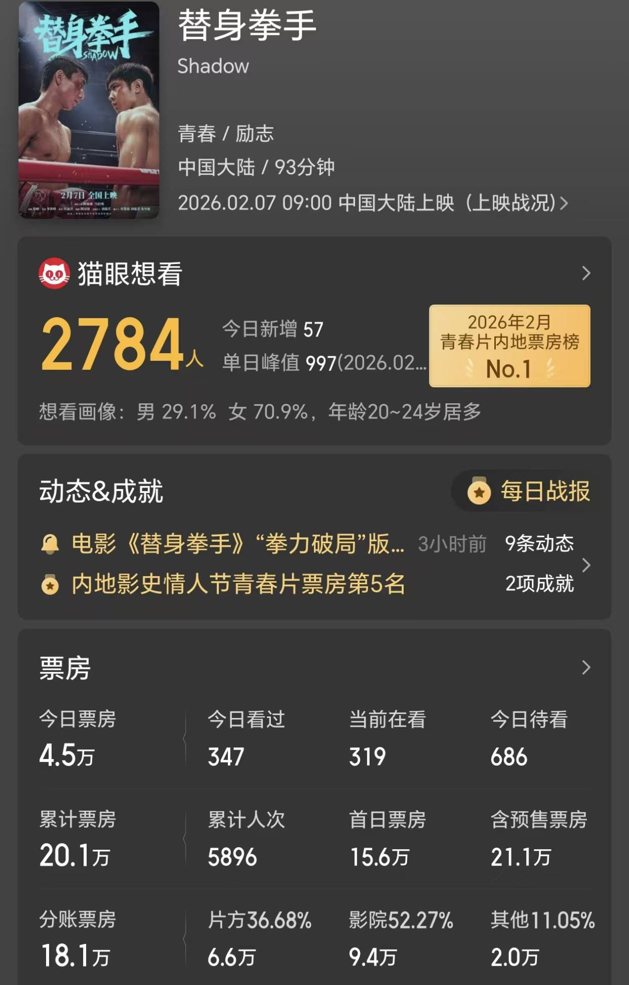 在这样一种强大的阵容之下,《替身拳手》本应能够创造一个相对比较可观的票房成绩,至少不会惨败。可没想到的是,该片上映了近两天,票房却只有20万人民币。